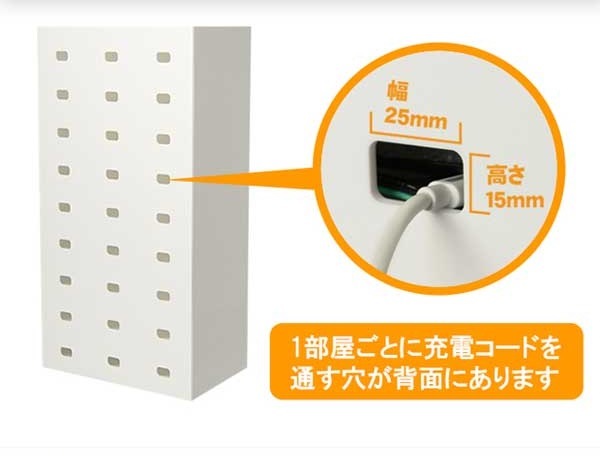 背面に充電コードを通す穴が開いているので充電したまま保管が可能です。