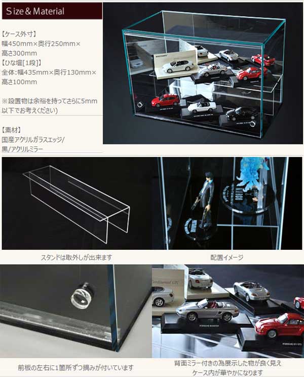 国産のアクリルを使用した透明度の高くコレクションに適したケースです。