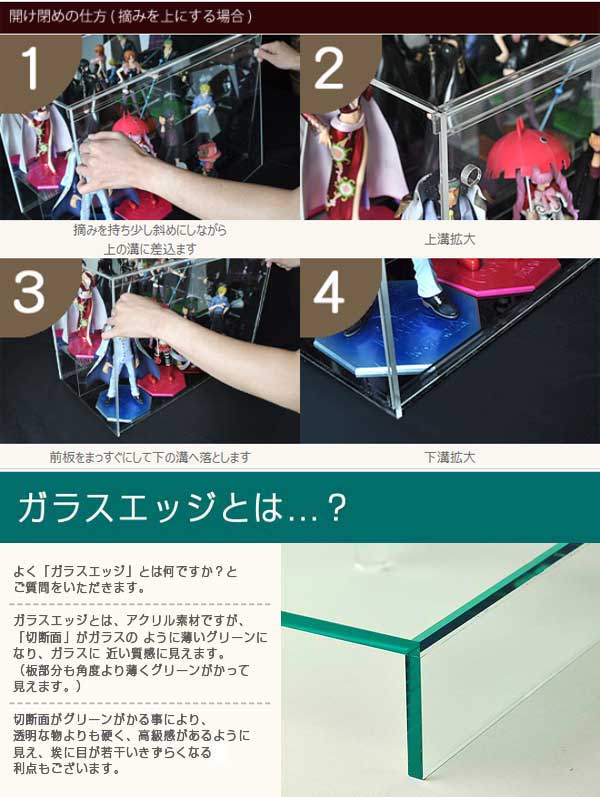 国産のアクリルを使用した透明度の高くコレクションに適したケースです。