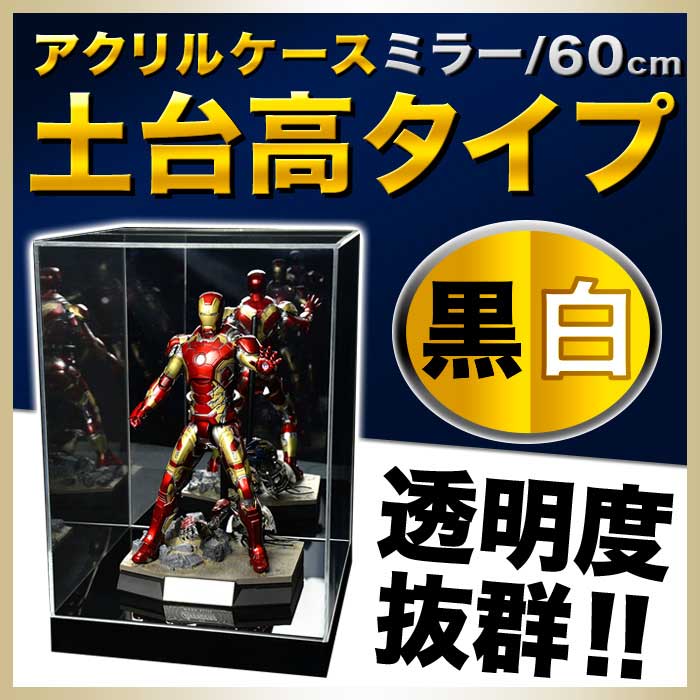 【幅60cm/奥行45cm/高さ60.5cm】アクリルケース/5面体/背面ミラー/土台高さ4cm