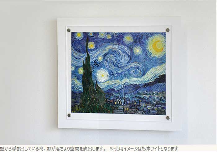 壁にフレームの影が落ちより作品が立体的に空間を演出します。