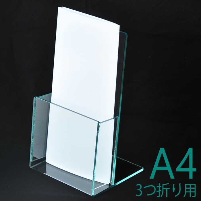 アクリルパンフレットスタンド A4三つ折り用 ガラスエッジ