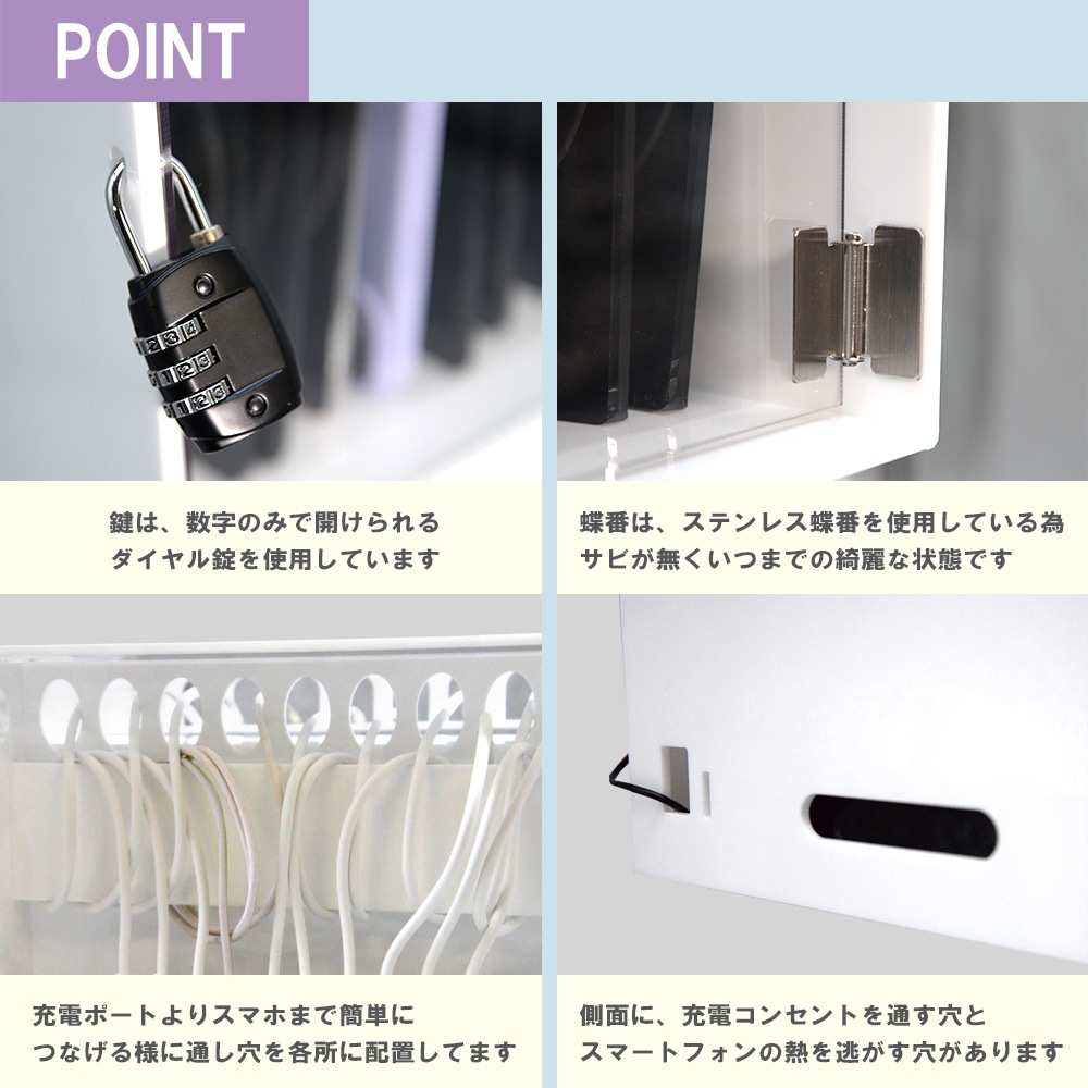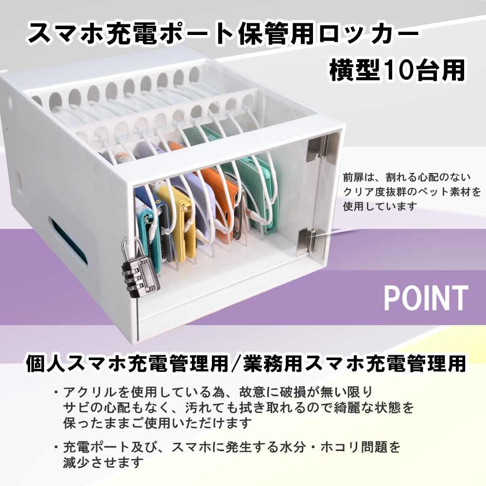 【ほこりから守る】スマホ充電ポート保管用ロッカー 10台用 ダイヤル錠付 (横型) 充電ステーション10ポート 充電スタンド