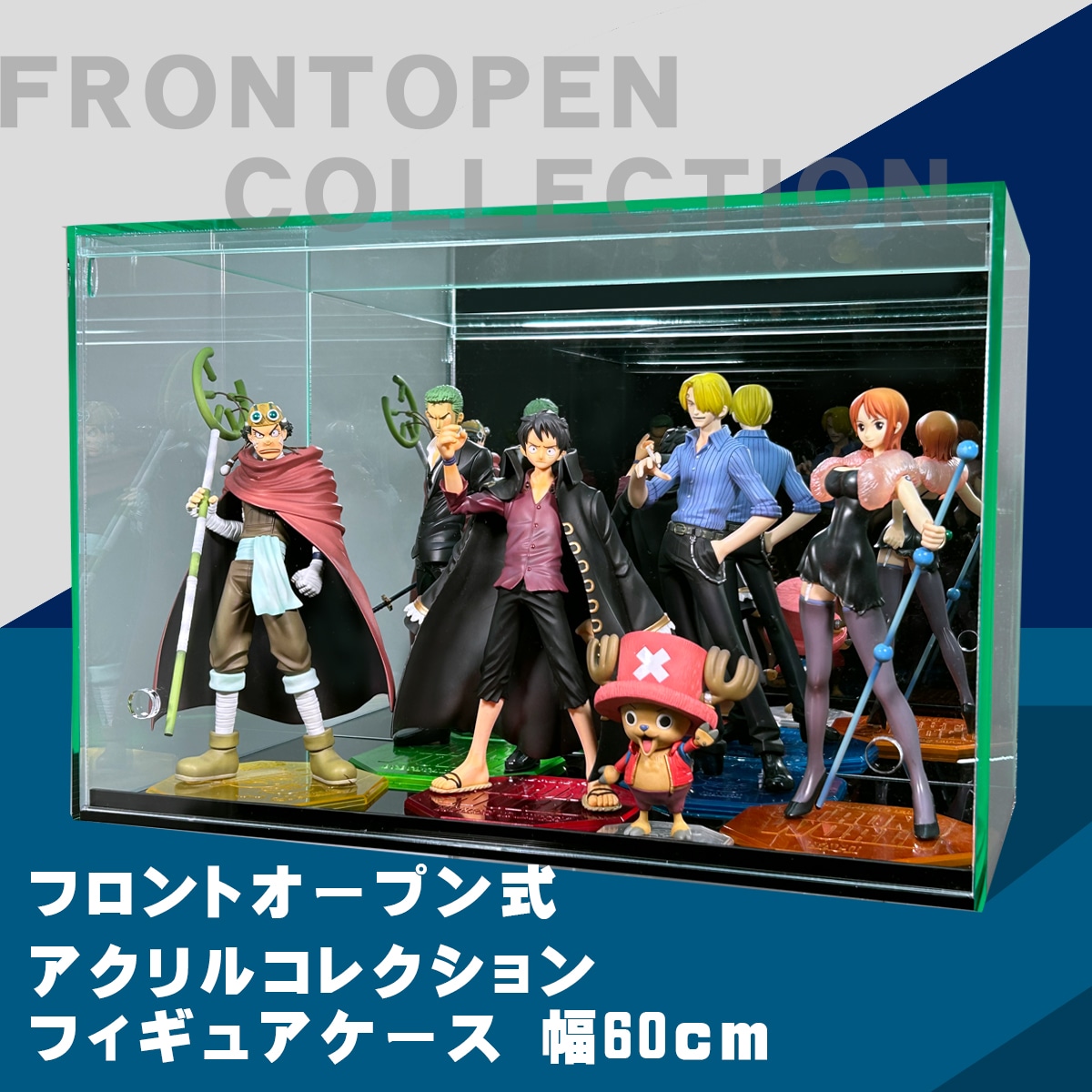【 ガラス色 幅60cm 】♪開閉に場所を取らず重ねられる♪フロントオープン式 アクリルコレクションケース/フィギュアケース