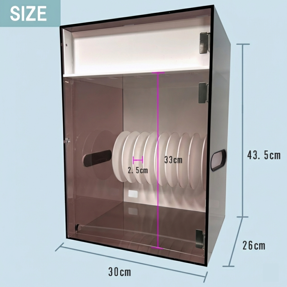 アクリルを使用している為、故意に破損が無い限りサビの心配も無く、汚れてく拭き取れるので綺麗な状態を保ったままご使用いただけます。
