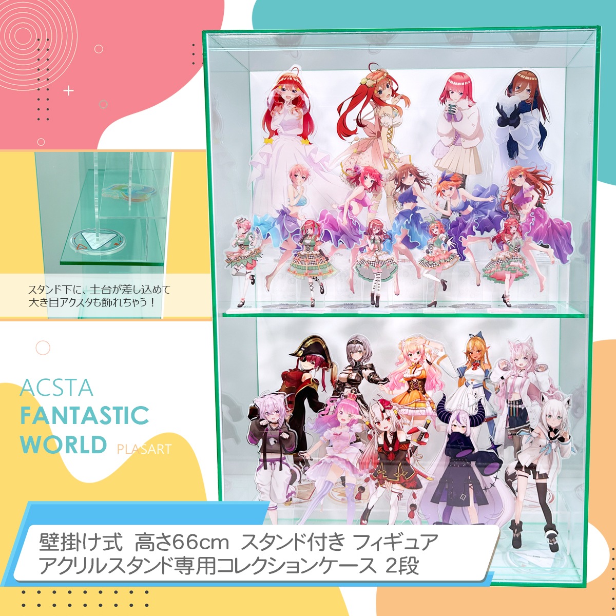 プラスアート【壁掛け式 高さ66cm 幅45cm】 ガラス色・背景白/スタンド付き フィギュア・アクリルスタンド専用コレクションケース 2段